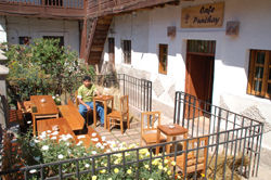 Pero no todo es del mejor color. Para variar, los carpinteros –quizás el gremio que se lleva las palmas de la informalidad peruana– lo sacaron de sus casillas, incluso contando con los consejos y advertencias de sus paisanos alemanes. Esto es demasiado para cualquier persona seria: demora en las entregas, calidad desigual, el eterno problema de la informalidad. ”Si algo me hace falta y tengo que aprender en Cusco, es paciencia, mucha paciencia”, dice Denis. “La impuntualidad es uno de los grandes problemas para los alemanes; cuando el bus llega dos minutos tarde es un gran problema, pero en el Perú y en el Cusco no lo es, yo tengo que aprender eso. Cuando comparo las cosas, me digo ¿por qué uno se pone tan nervioso por cinco minutos? Creo que el Cusco me está volviendo muy paciente“. Su relación con los proveedores también es desigual: ”Normalmente cada dos días, deben traerme la leche, pero no es así, en agosto no vino en muchas semanas, felizmente hay alternativas”. |